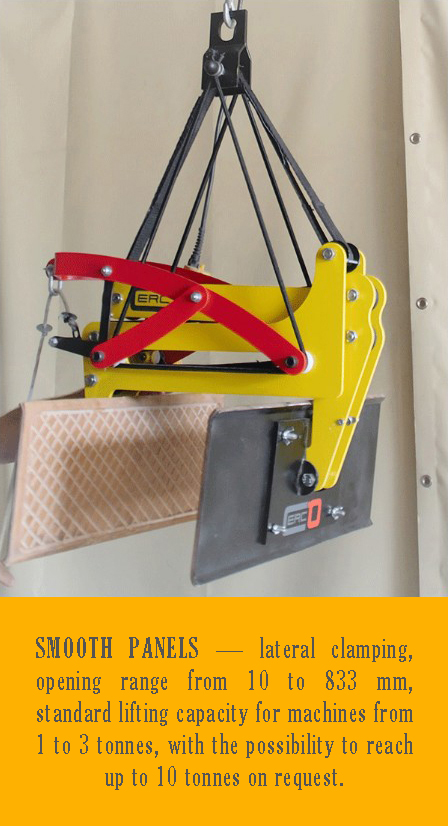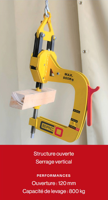 This innovative vertical clamp uses self-tightening technology. It is ideally suited for handling bare or open-structure timber-framed wood panels or walls.